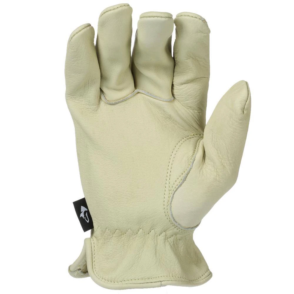 This premium grain cowhide Leather Driver Glove from Husky is great for heavy-duty work. Its water-resistant properties enable you to work in wet and damp conditions, allowing your hands to stay dry and comfortable. Crafted with 100% grain cowhide, it provides long-lasting durability and superior protection with an elastic wrist and strong keystone thumb.