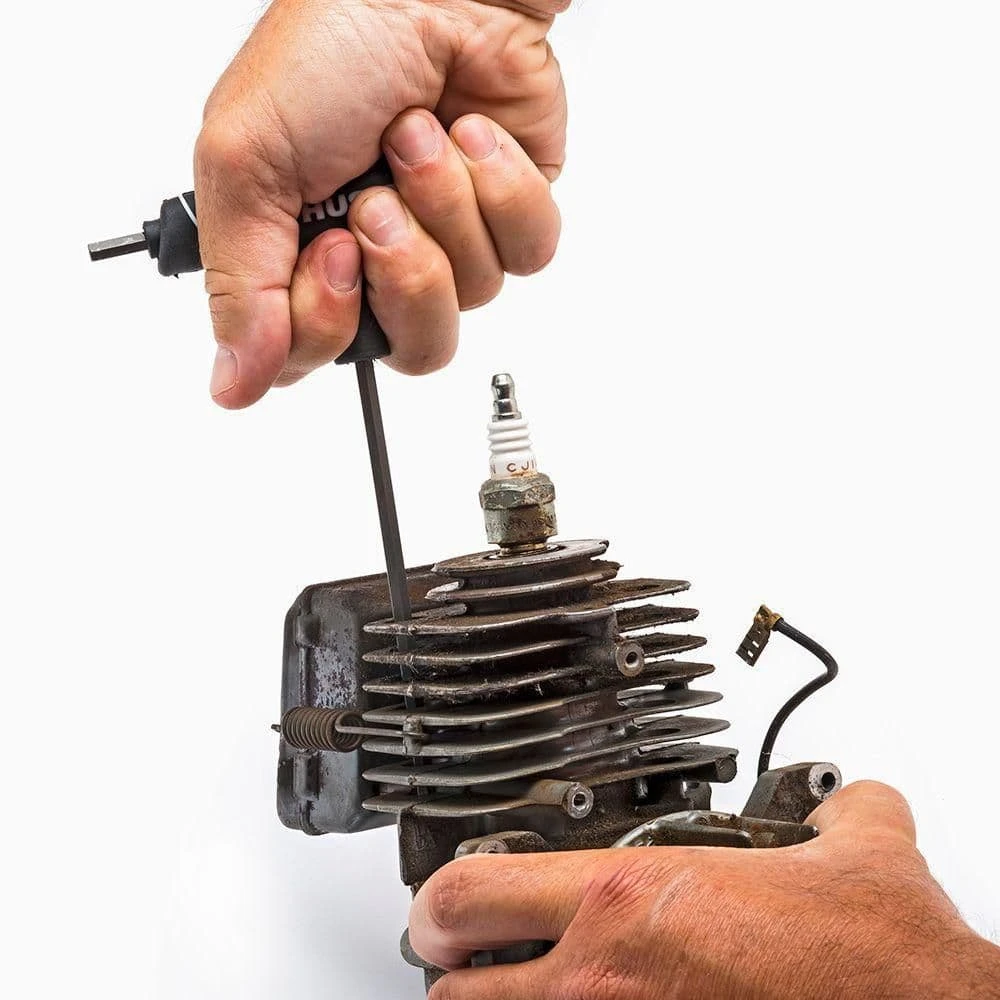 The Husky 43-Piece Hex and Torx Key Set includes hex keys made from alloy steel for long-lasting wear and featuring a chamfered-end design. The Allen wrenches resist rotational distortion and come in a variety of SAE and metric sizes. The finish provides resistance to corrosion while the included caddies help you keep them organized.