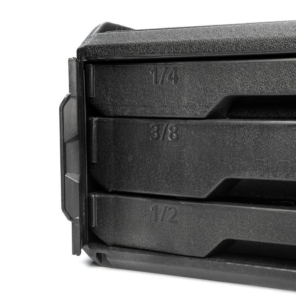 - Trays marked with sizes to keep your tools organized