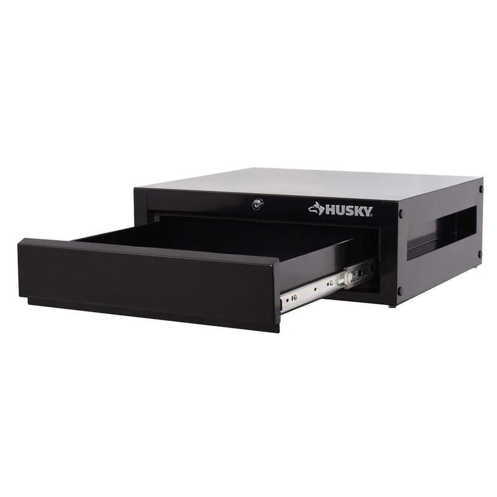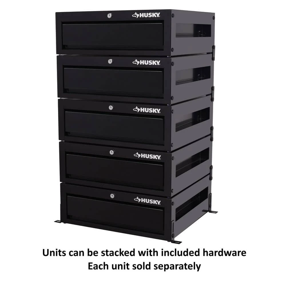 The Husky 20in. 1-Drawer Modular (MOD) storage box is a versatile, lockable storage solution that can be installed almost anywhere. At 20 in. wide and 6.8 in. high, this storage box can easily fit under your bed, in your vehicle, on top or under a worktable, or even in that unused space under a rolling tool cabinet. The drawer is designed to fit flush into the box and a foam strip around the inner edge helps seal the drawer inside the cabinet to help prevent dust or moisture from entering. Four adjustable brackets are included to secure the MOD box from above, behind or below. In other words, you can affix the box to the floor, to the wall behind, or to a work surface above. You can even create a drawer tower by stacking multiple units of this box on top of each other and securing the included connecting plates. A keyed lock is provided to secure the drawer’s contents and the side walls are recessed as built-in handles to easily pick up and move the box.There are so many uses and applications for this storage box! Better organize your life and secure your valuables in those spaces you never thought you could with this amazing Husky 20 in. MOD box!