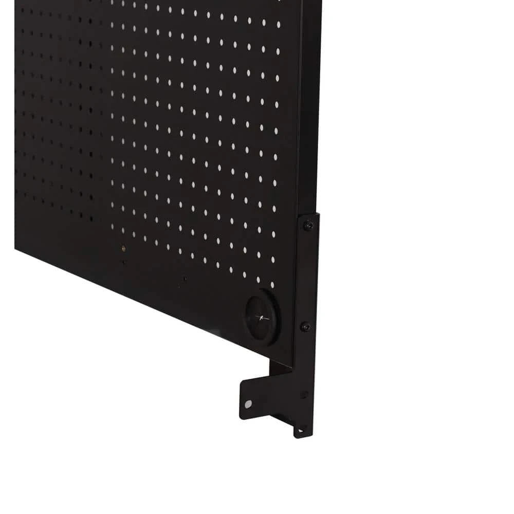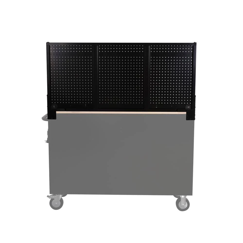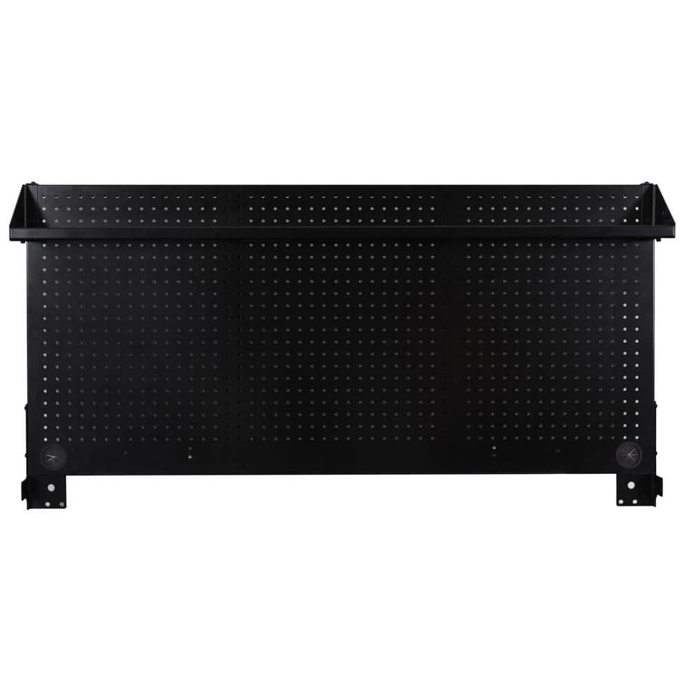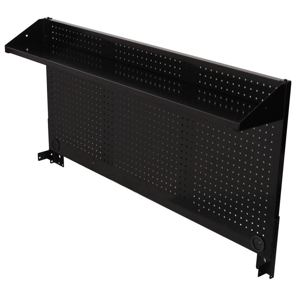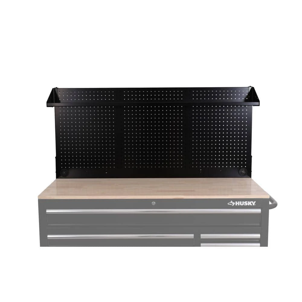 The Husky Modular 52 in. Black Pegboard Attachment is part of a system that allows you to customize your own steel storage configuration. The modular system consists of the mobile workbench, top chest, pegboard, and side locker (all components sold separately). The pegboard is constructed of 21-Gauge steel and finished with a rust-resistant powder coat finish. It easily mounts on to the Modular 52 in. 10-Drawer Mobile Workbench (sold separately) to provide additional storage and organization capabilities. A full-width shelf along the top creates additional storage as well. This Husky 52 in. Black Pegboard Attachment will be a great addition to your modular workspace.