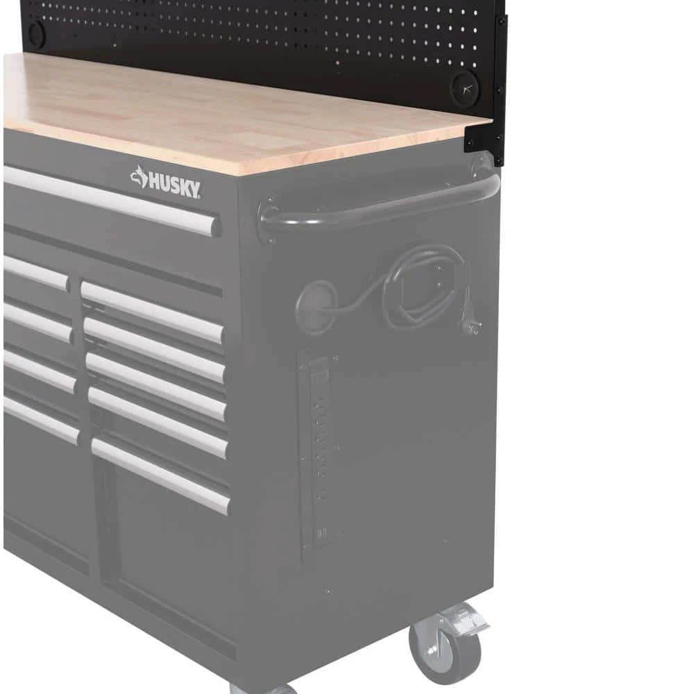 - 2 power strip mounting locations on the pegboard from the power strip included on the Husky modular 52 in. 10-drawer workbench (Model H52MWC10MOD), sold separately