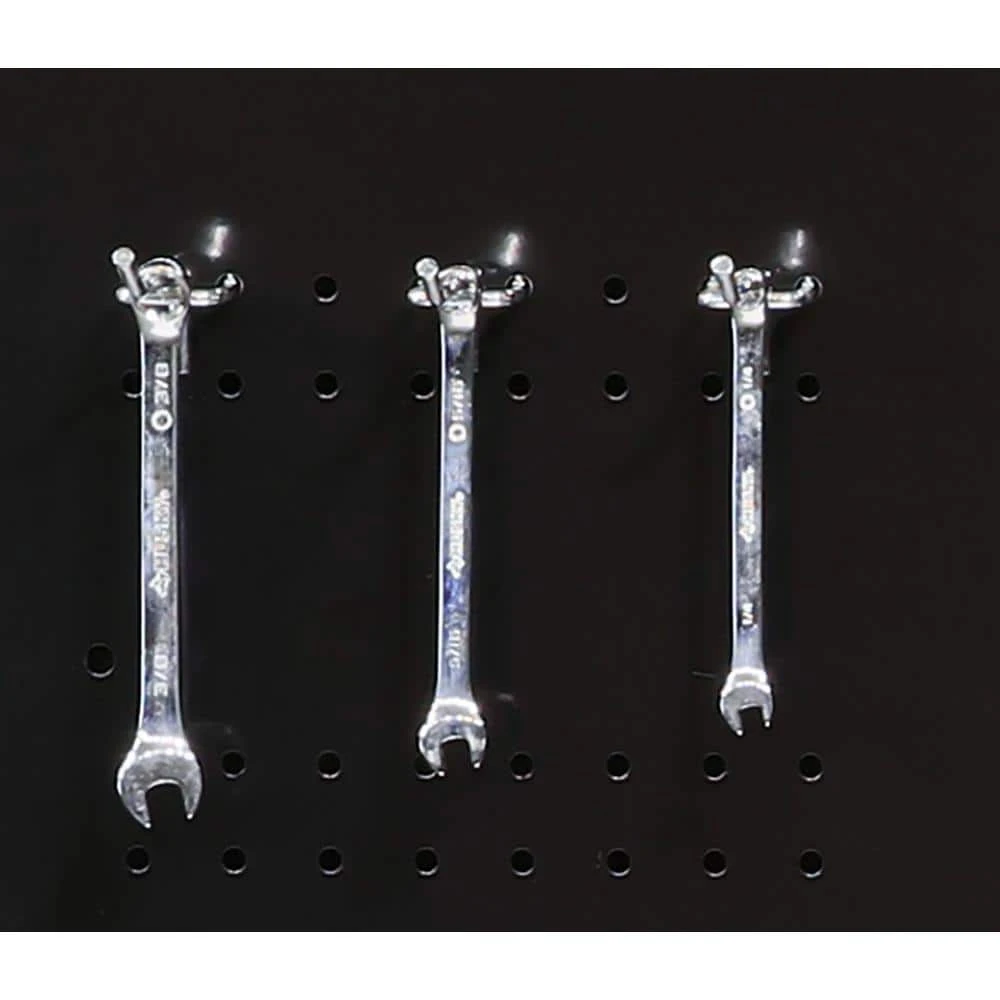 - Sturdy double-wall doors include interior pegboard panels for additional storage (peg hooks sold separately)
