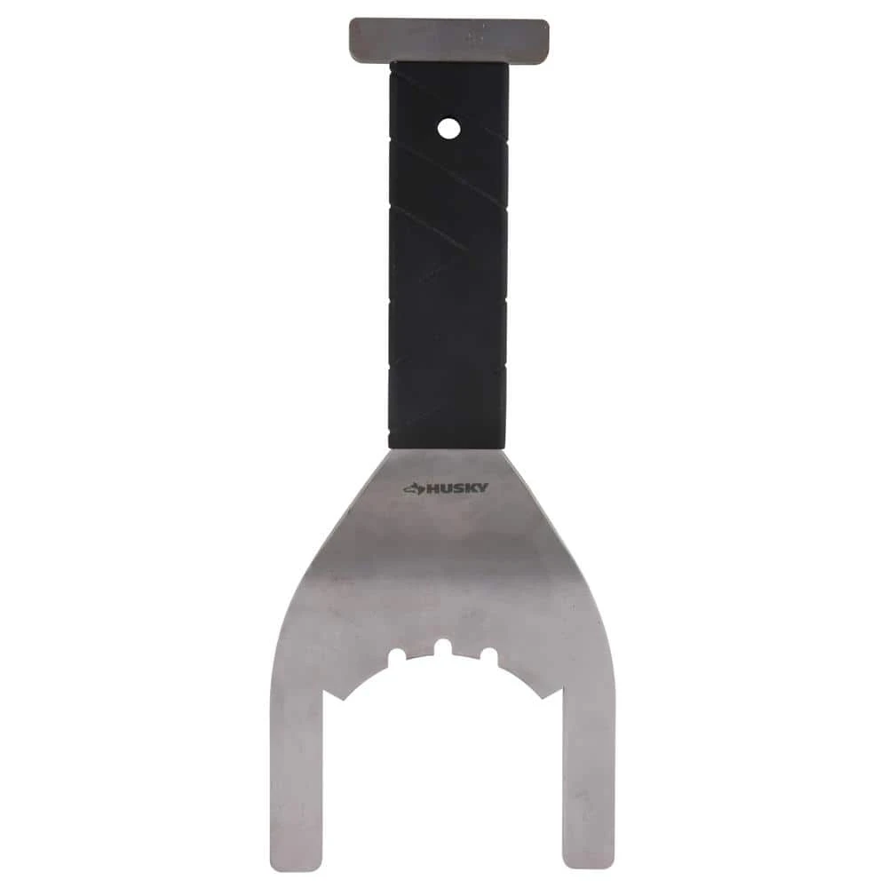 With the Husky Universal Sink Drain Wrench, you can easily remove any kitchen faucet or drain that has hex nuts or 4, 6 or 8 tab locking nuts. This wrench is designed to fit all major manufacturing branded drains, including those constructed of plastic or brass. The open ended wrench allows you to easily attach to any drain without having to disconnect the drain lines.