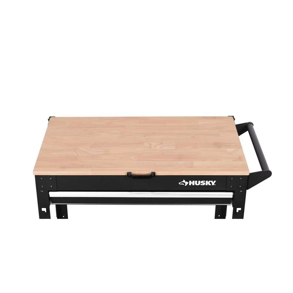 The Husky Sliding Wood Top is designed to attach exclusively to the Husky 36in. 1-Drawer, 2-Tray All-Terrain Cart (Model# HOUTDOORCART- sold separately). This innovative feature allows you to turn your All-terrain cart into a mobile project center with a solid-wood work surface. Whether you need a stable surface for a chop saw, or a flat surface to work on projects or gardening tasks, this wood top provides a reliable work area out on site. When it’s not needed, the top easily lifts-up and slides down the rear guide channels to be completely out of the way. The slide channels include POM spacers and EVA pads to help keep the wood top in place and protected. The wood top is also protected with multiple layers of a UV-protective, clear acrylic coating for lasting durability.
