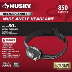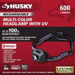 Husky 650 Lumens Dual-Power Broad Range LED Headlamp 7 Modes With USB Port And Rechargeable Battery