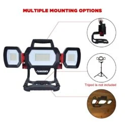 Husky 10,000 Lumen Three-Head Hybrid LED Work Light With Rechargeable Battery